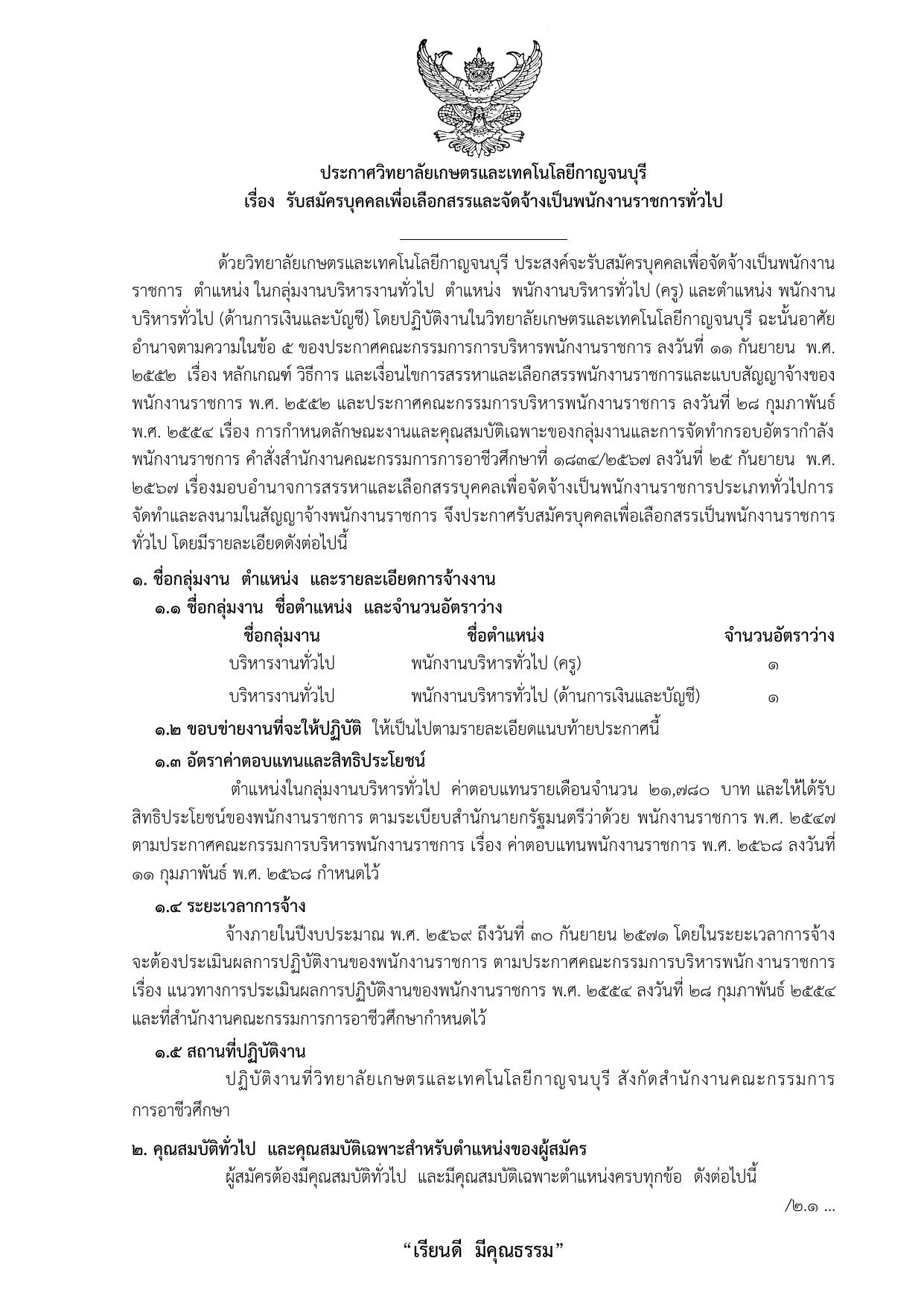พนักงานบริหารทั่วไป (ครู) และพนักงานบริหารทั่วไป (ด้านการเงินและบัญชี) วิทยาลัยเกษตรและเทคโนโลยีกาญจนบุรี — 10 หน้า (เหมาะกับมือถือ)
