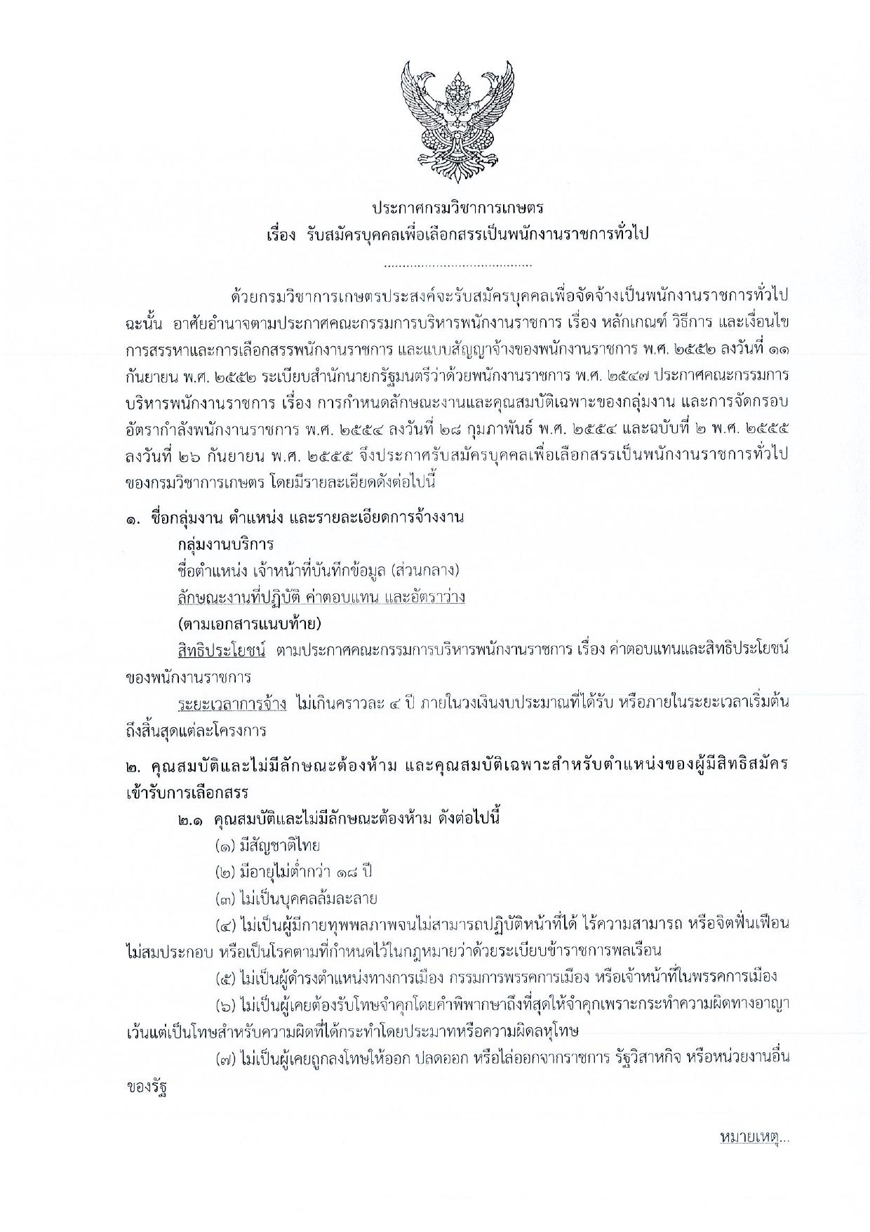 ประกาศรับสมัคร เจ้าหน้าที่บันทึกข้อมูล (ส่วนกลาง) กรมวิชาการเกษตร — 6 หน้า (เหมาะกับมือถือ)
