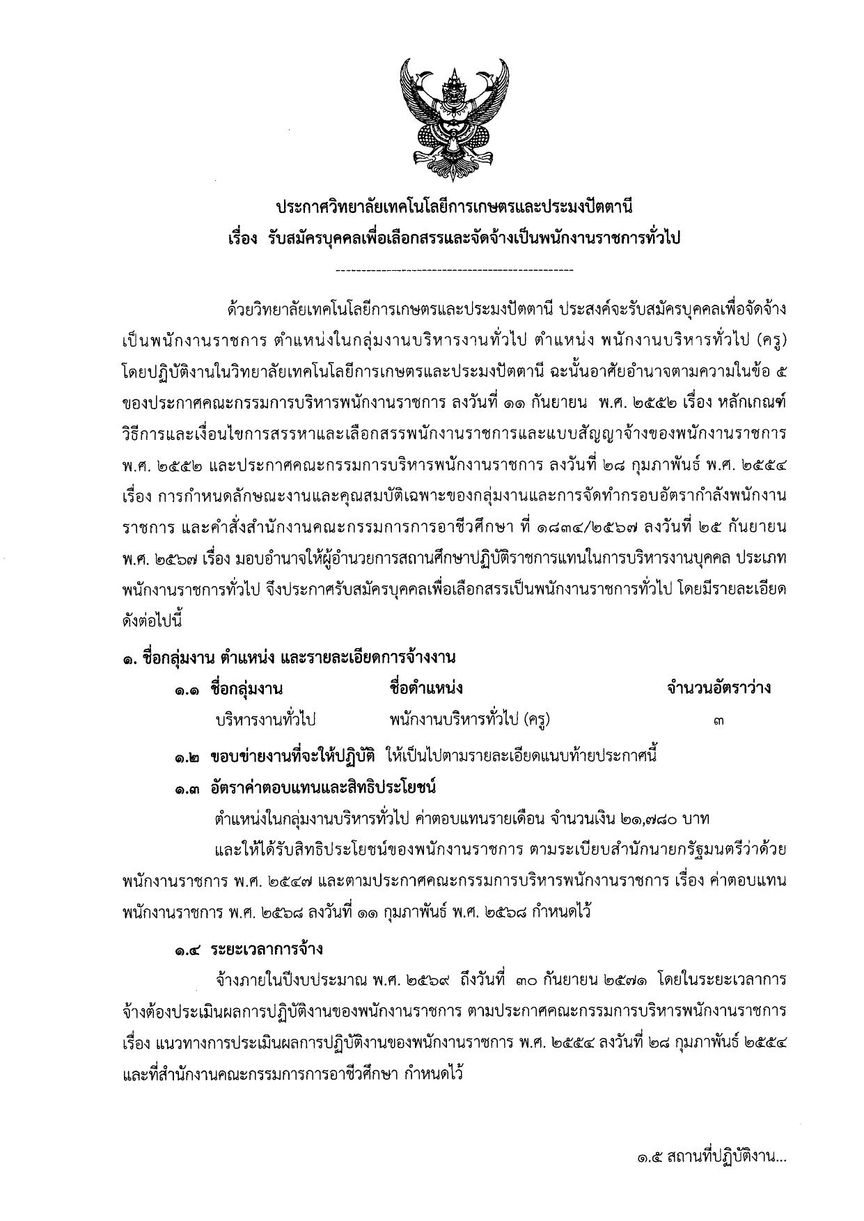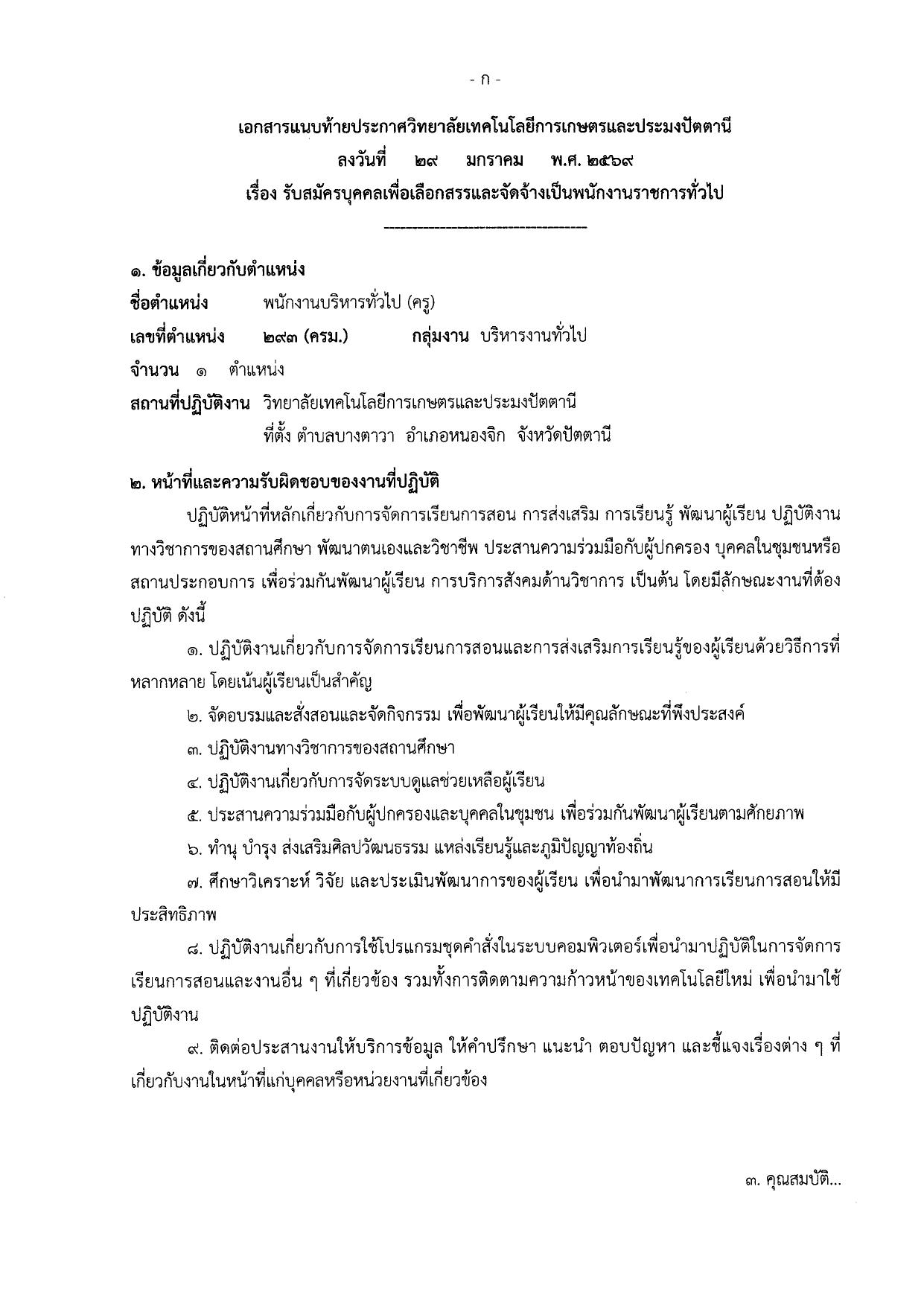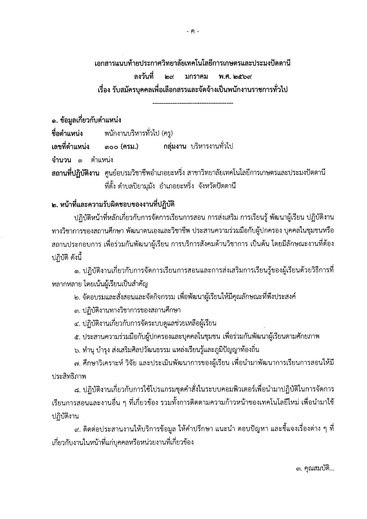 พนักงานบริหารทั่วไป (ครู) วิทยาลัยเทคโนโลยีการเกษตรและประมงปัตตานี — 14 หน้า (เหมาะกับมือถือ)