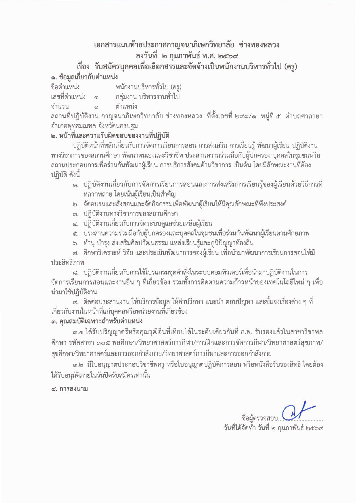 พนักงานบริหารทั่วไป (ครู) กาญจนาภิเษกวิทยาลัย ช่างทองหลวง — 7 หน้า (เหมาะกับมือถือ)
