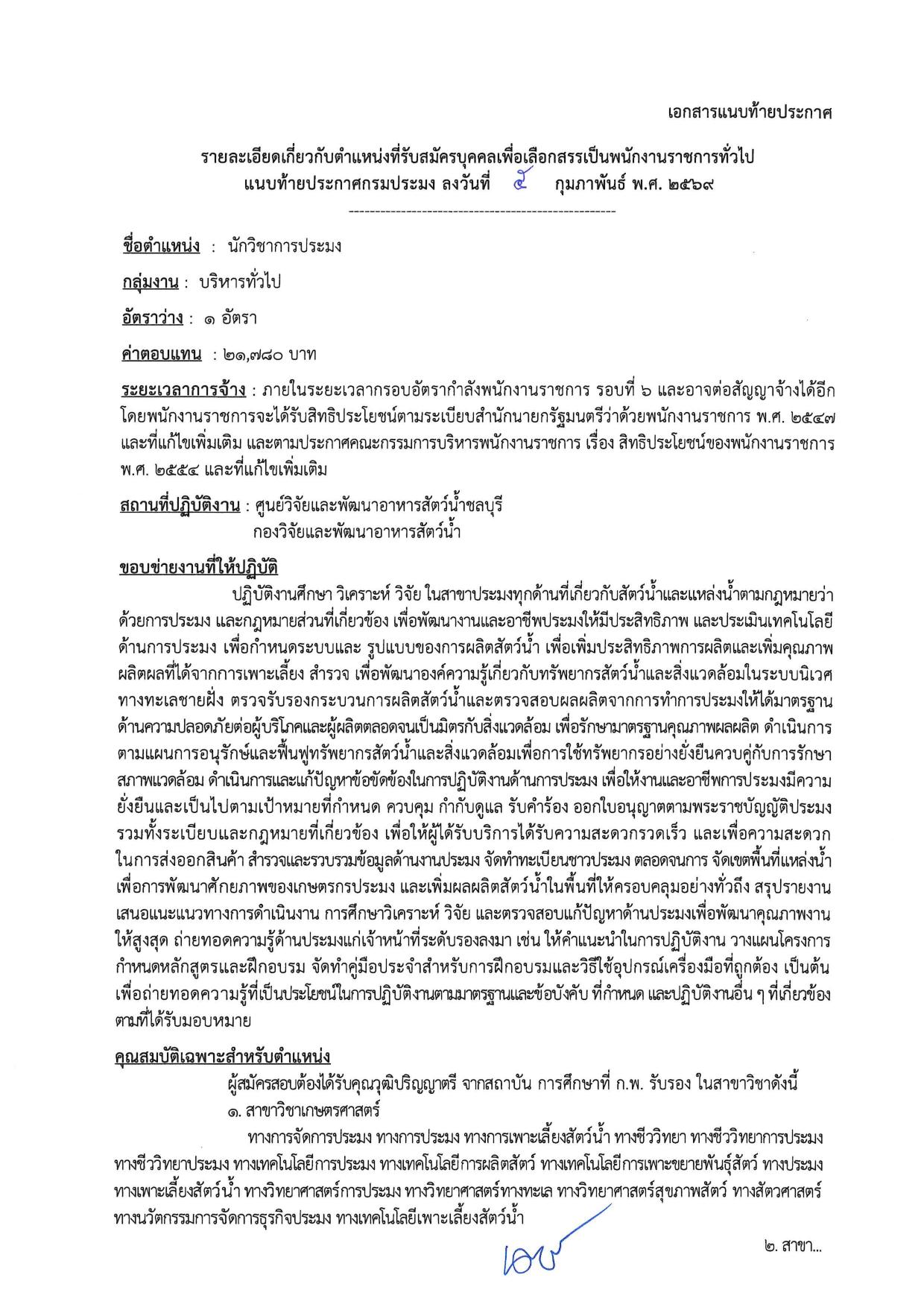 นักวิชาการประมง (ศูนย์วิจัยและพัฒนาอาหารสัตว์น้ำชลบุรี) — 7 หน้า (เหมาะกับมือถือ)