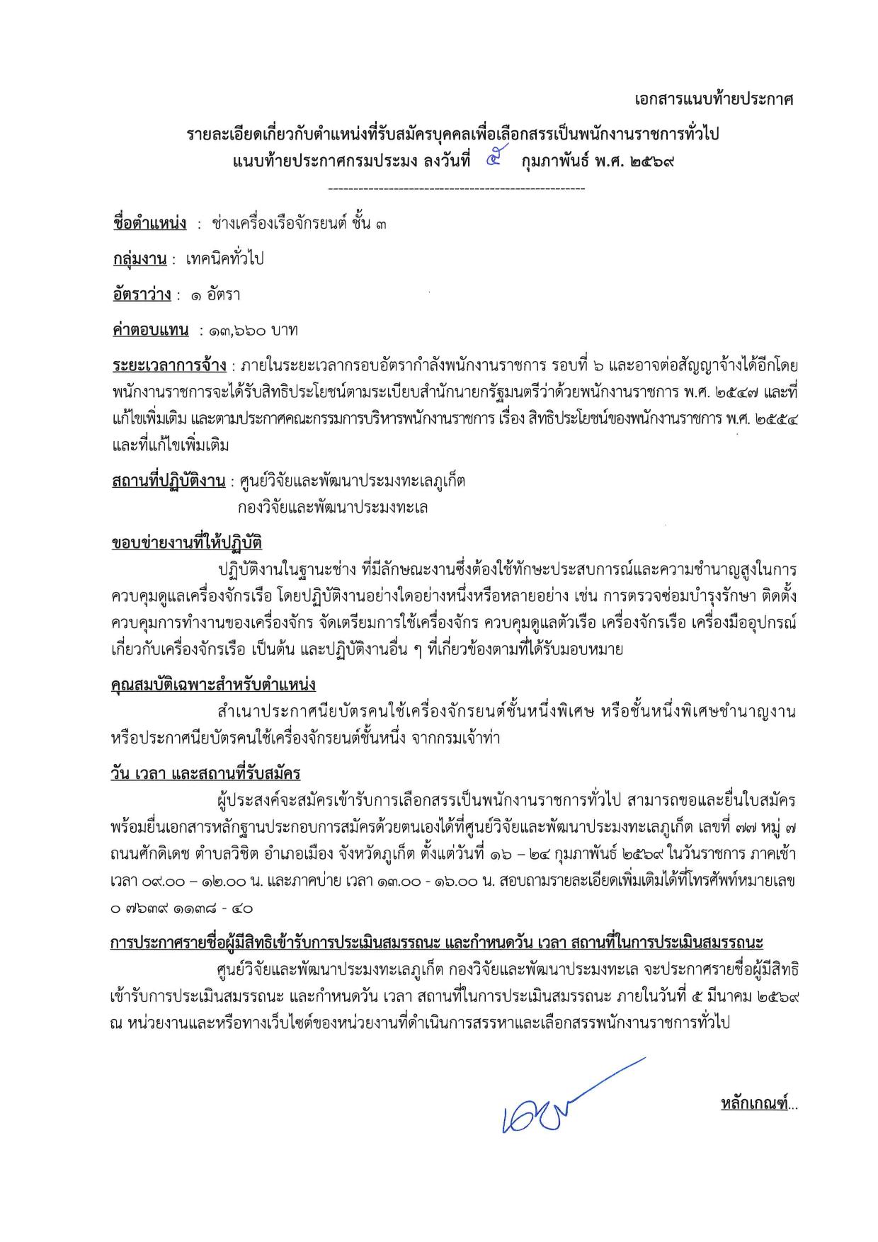 ช่างเครื่องเรือจักรยนต์ ชั้น 3 (ศูนย์วิจัยและพัฒนาประมงทะเลภูเก็ต) — 6 หน้า (เหมาะกับมือถือ)
