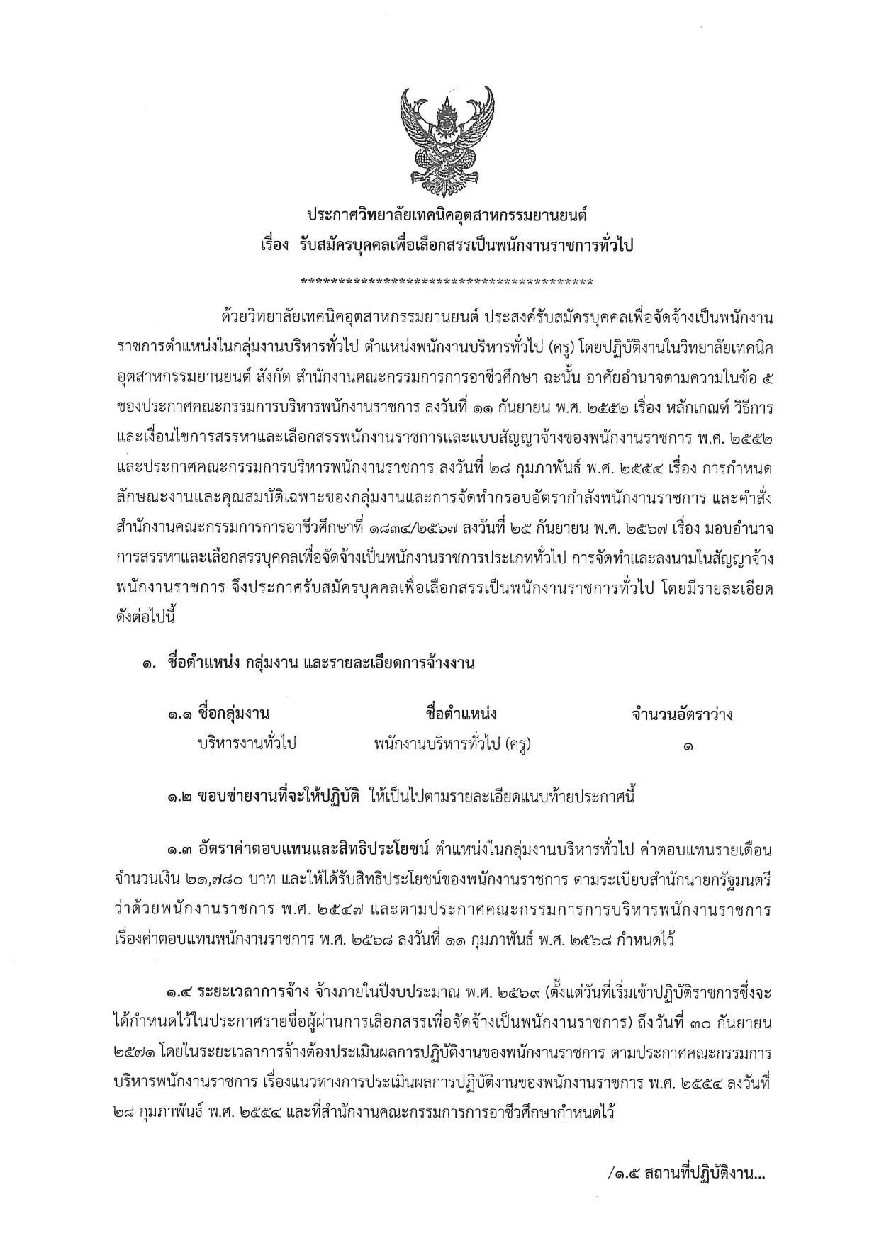 พนักงานบริหารทั่วไป (ครู) วิทยาลัยเทคนิคอุตสาหกรรมยานยนต์ — 9 หน้า (เหมาะกับมือถือ)