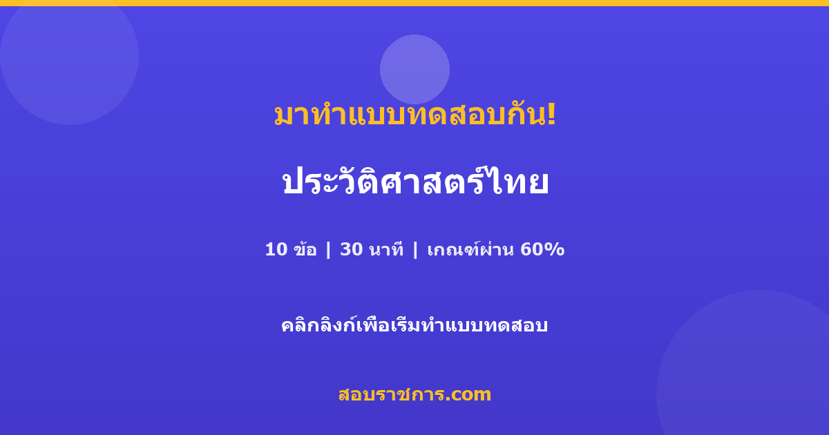 แบบทดสอบเรื่อง ประวัติศาสตร์ไทย