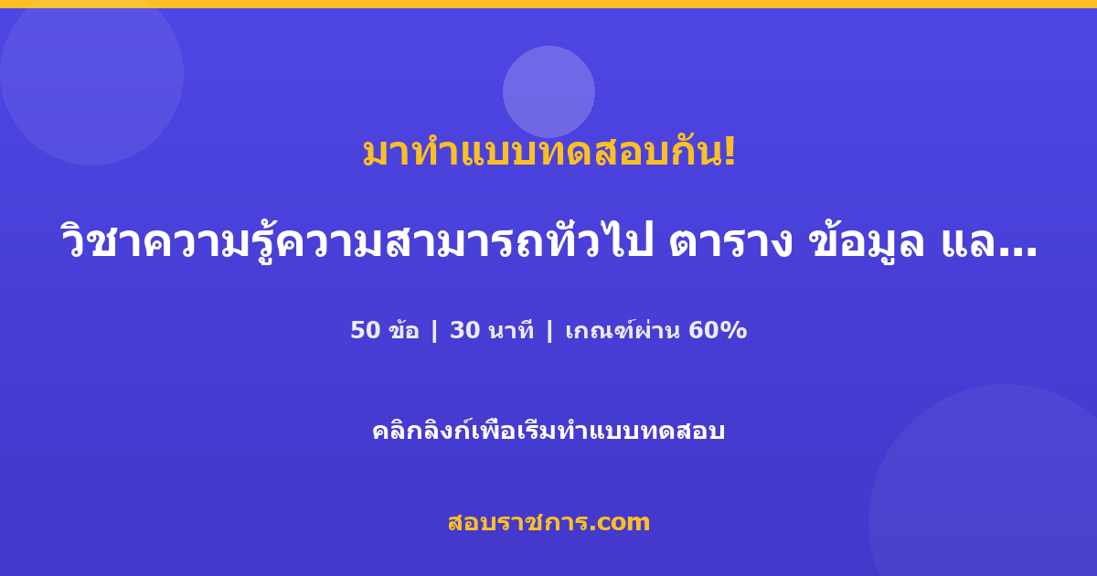 แบบทดสอบเรื่อง วิชาความรู้ความสามารถทั่วไป ตาราง ข้อมูล และสถิติ