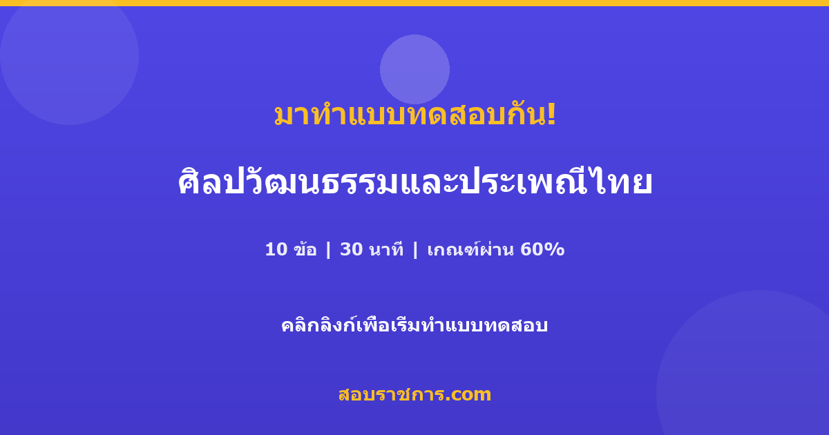แบบทดสอบเรื่อง ศิลปวัฒนธรรมและประเพณีไทย สำหรับการสอบภาค ก. ความรู้ความสามารถทั่วไป