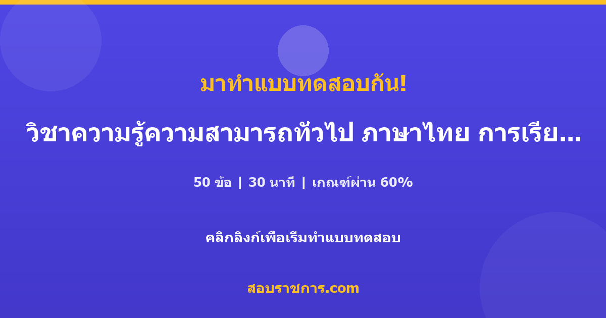 แบบทดสอบเรื่อง วิชาความรู้ความสามารถทั่วไป ภาษาไทย การเรียงประโยค