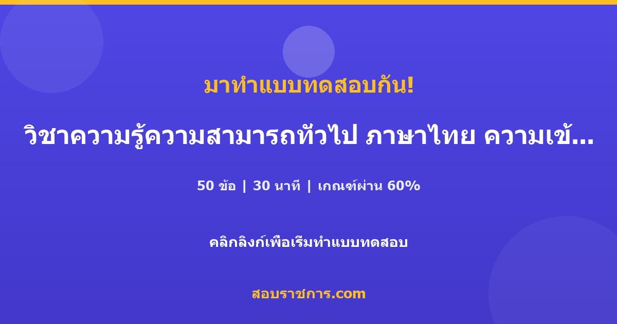 แบบทดสอบเรื่อง วิชาความรู้ความสามารถทั่วไป ภาษาไทย ความเข้าใจภาษา